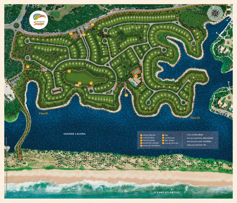 O Reserva Sauípe é o lugar para você construir a sua casa de praia, com bom gosto e estilo que você sempre sonhou. Seu projeto de vida pedia um condomínio assim. São lotes a partir de 405 m², com condições de pagamento direto com a incorporadora ou financiamento bancário.