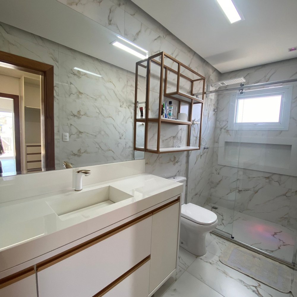Com uma área construída de 200m², esta casa é composta por 4 suítes e está semimobiliada.