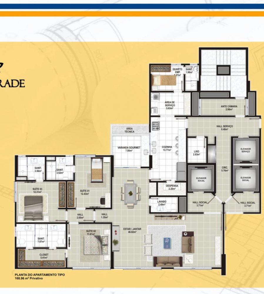- Área Privativa: 169 m²