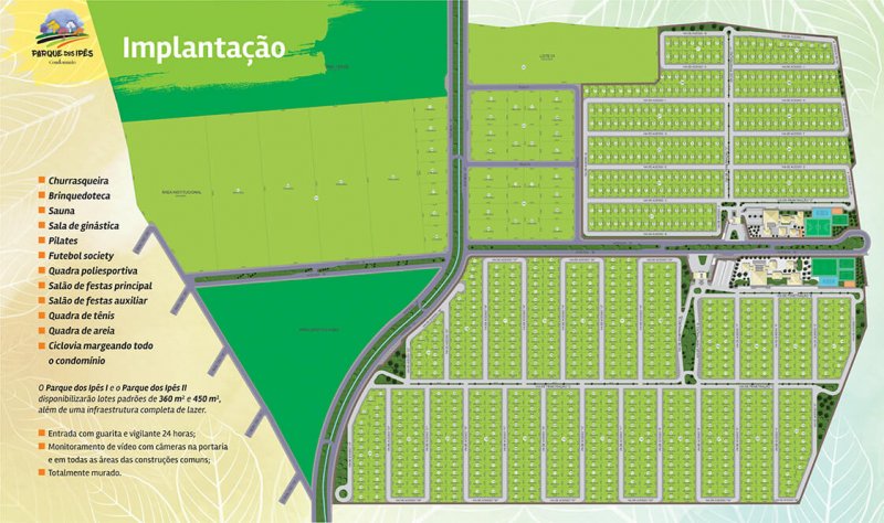 O Residencial Parque dos Ipês, além de uma localização estratégica em área nobre da cidade, traz uma infraestrutura completa com opções de terrenos de 300m² a 450m², com condições especiais de aquisição em até 36 parcelas.